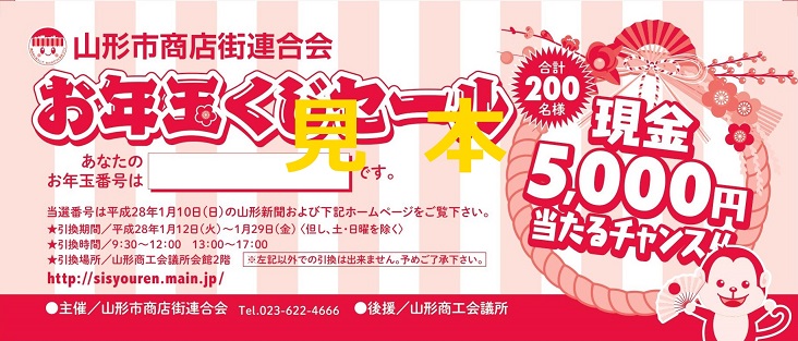 当選クジを山形商工会議所2F産業振興課へご持参ください。