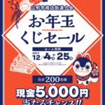 - 現金5,000円が合計200名に当たる!! 毎年恒例の山形市商店街連合会「お年玉くじセール」が今年も開催されます。 開催期間は平成29年12....[続きを読む]